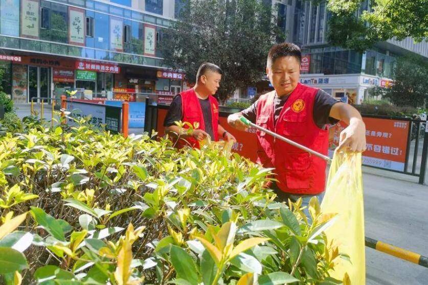 晨光熹微,车水马龙,城市开启新的一天。位于合肥市蜀山区百利中心周边的繁华商业街区,一片跃动的“志愿红”成为清晨亮眼的风景。